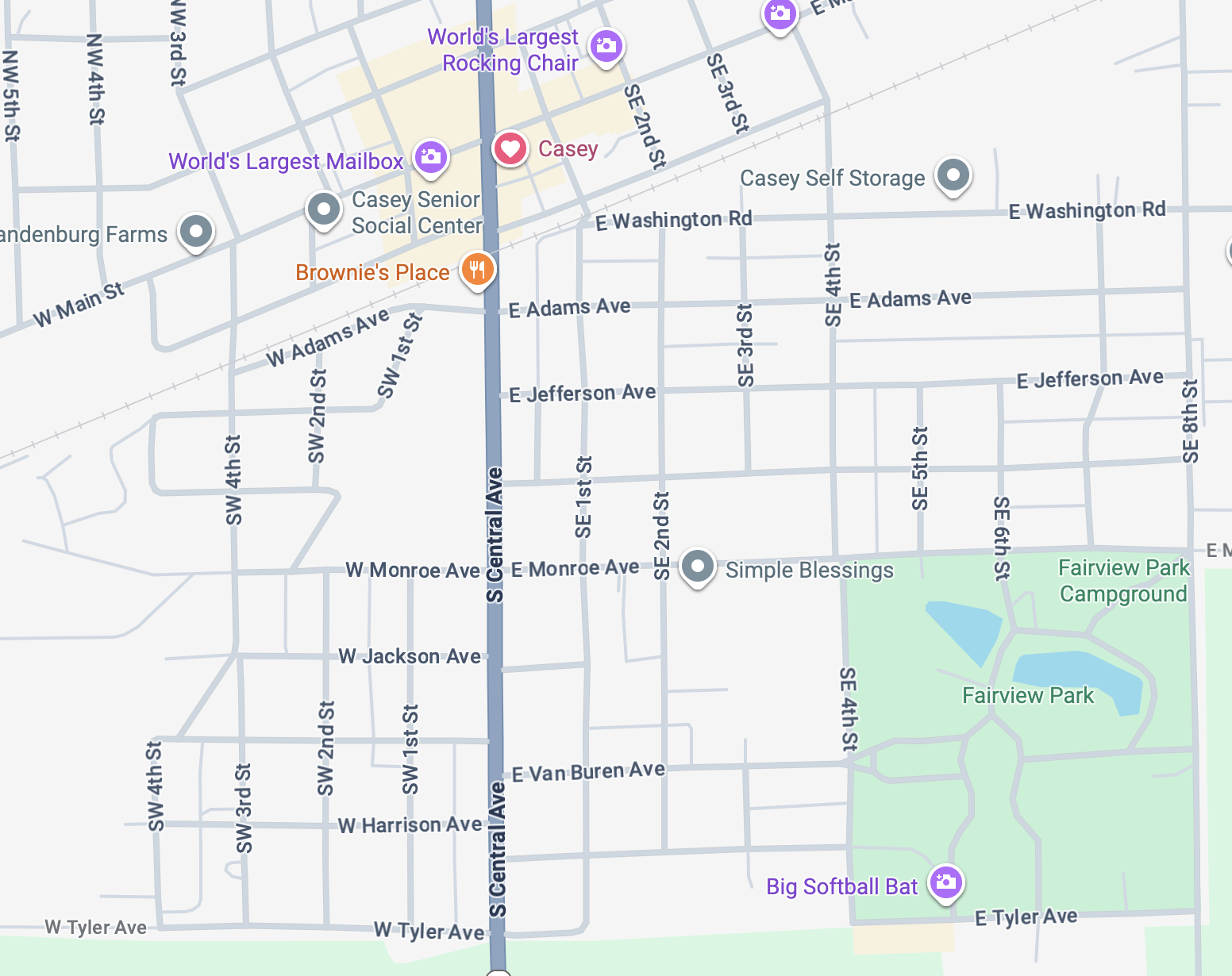 The museum is located at the southern end of Fairview Park in Casey, IL. Look for the big softball bat in front of the building.